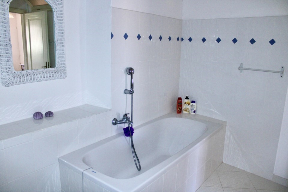 On the ground floor, there is a beautifully furnished living room designed for comfortable family life. There is also a separate studio with a private bathroom, ideal for guests or tourist rental. Both the living room and the apartment have direct access to an intimate garden, perfect for relaxing and enjoying the Mediterranean atmosphere.