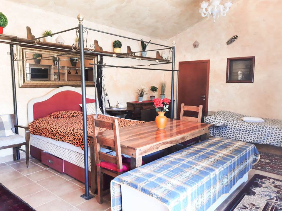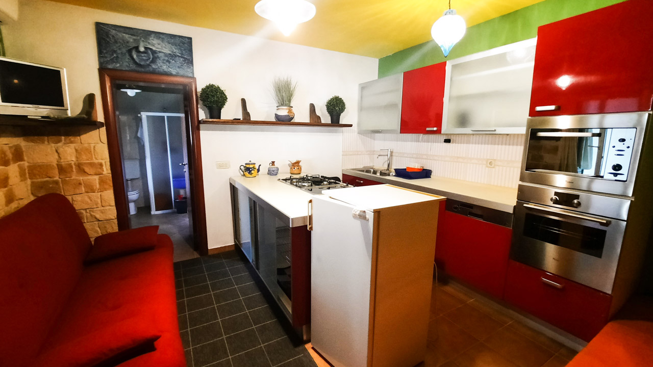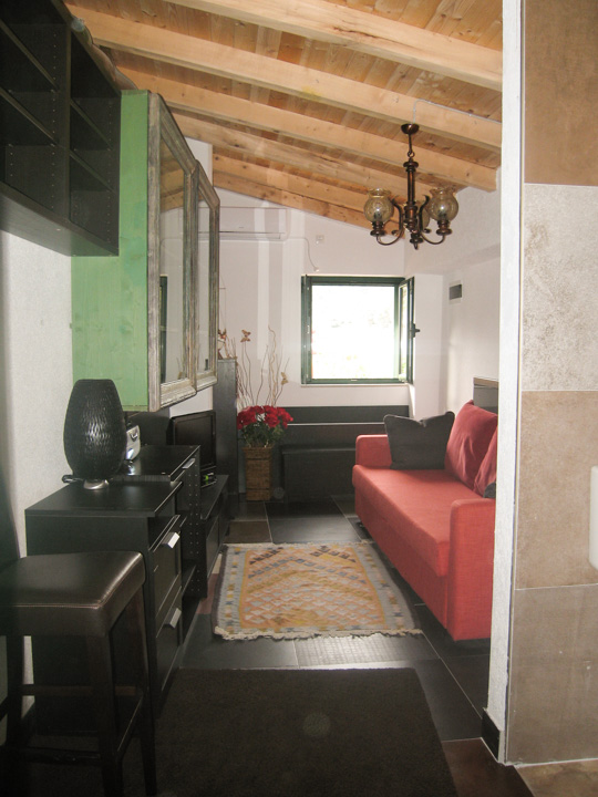 On the first floor, there is a room with a kitchen and fireplace, as well as a covered area of 16 m². There is potential to convert this level into an additional apartment. A covered staircase leads to another apartment of approx. 40 m², which has access from the upper road.